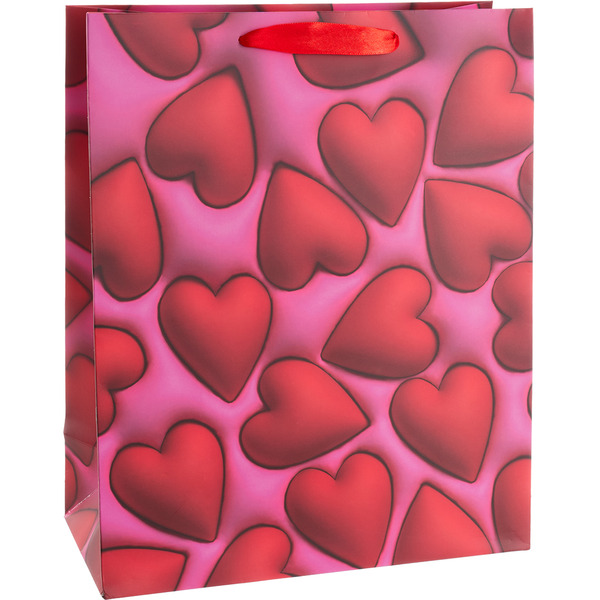Пакет подарочный, 210гр, Объемные сердца, 32*26*12 см, 1 шт.