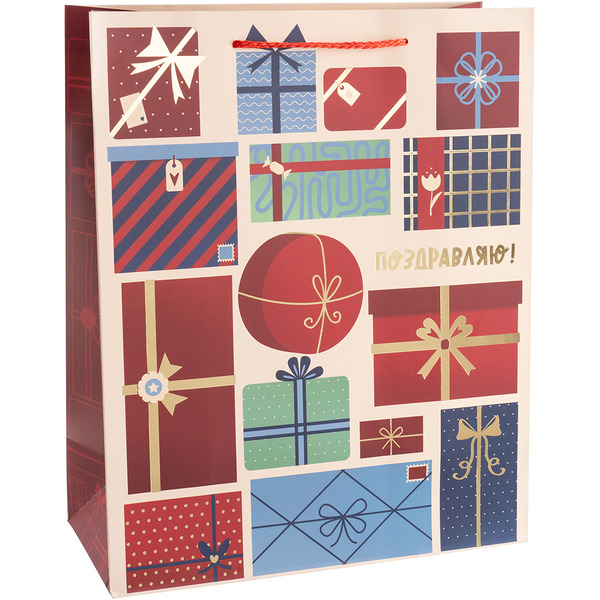 Пакет подарочный, 210гр, Поздравляю! (подарки), Металлик, 55*45*20 см, 1 шт.