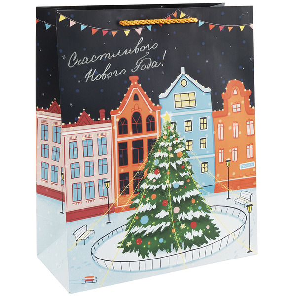 Пакет подарочный, 210гр, Счастливого Нового Года!, Металлик, 55*45*20 см, 1 шт.