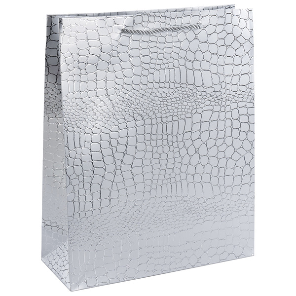 Пакет подарочный, 210гр, Текстура кожи, Дизайн №1, Серебро, Металлик, 32*26*10 см, 1 шт.