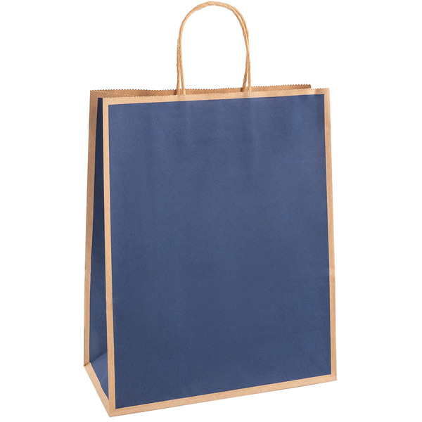 Пакет подарочный, Крафт 120гр, Стильный кант, Дизайн №3, Темно-синий, 33*26*12 см, 1 шт.