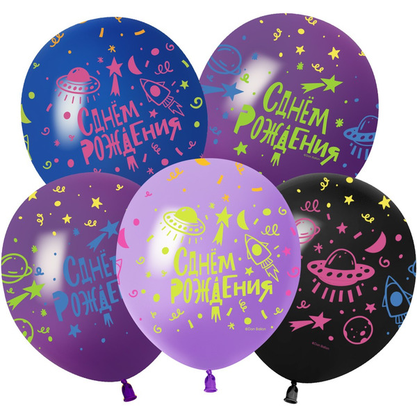 Шар (12"/30 см) Яркий космос, С Днем Рождения!, Ассорти, флуор, 5 ст, 25 шт.