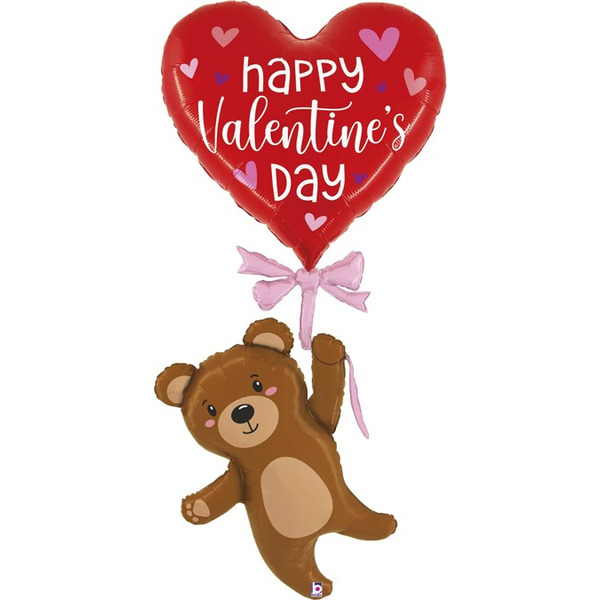 Шар (69"/175 см) Фигура, Мишка с сердечком, 1 шт. в уп.