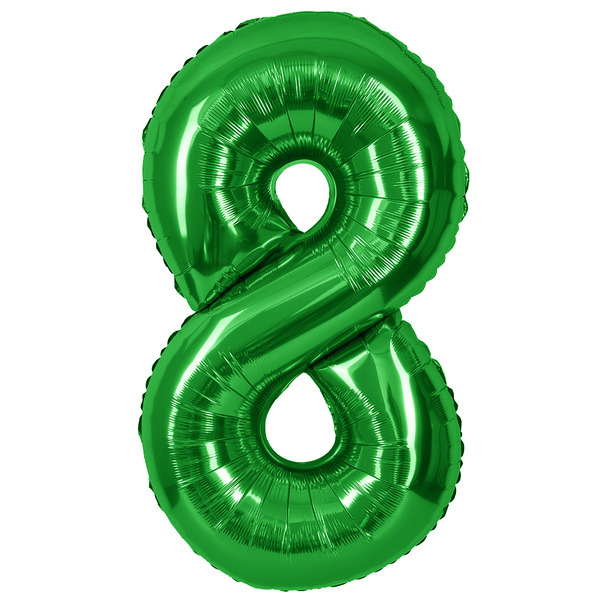 Шар (40"/102 см) Цифра, 8, Зеленый, Металлик, 1 шт. в уп.