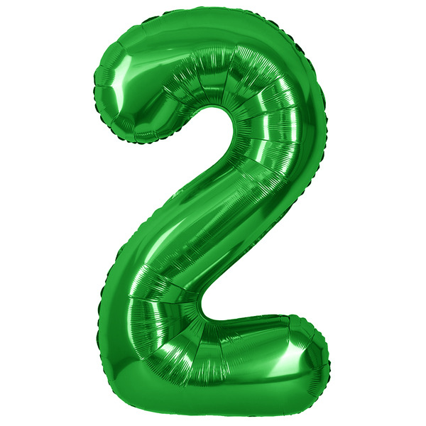 Шар (40"/102 см) Цифра, 2, Зеленый, Металлик, 1 шт. в уп.