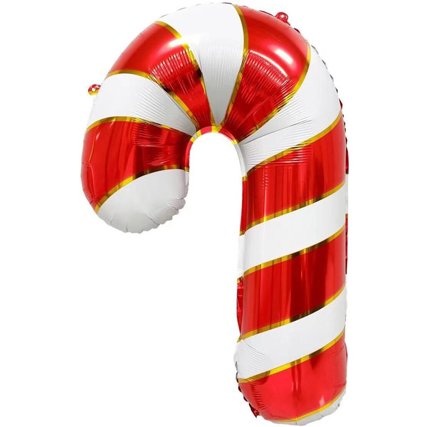 Шар (29"/74 см) Фигура, Леденец трость, Золотая полоска, Белый/Красный, 1 шт. в уп.