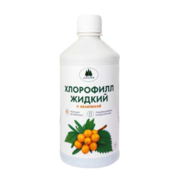 Хлорофилл жидкий от ДАРЛАЙФ - это зеленая кровь растений. Благодаря хлорофиллу растения способны перерабатывать солнечный свет в энергию, выделяя кислород.Хлорофилл жидкий от ДАРЛАЙФ представлен в жидкой форме, что делает продукт легко усвояемым для организма. Плюс жидкой формы - продукт проходит через ротовую полость, гортань, пищевод, оказывая антибактериальное и противовоспалительное действия.Полезные свойства Хлорофилла жидкого от ДАРЛАЙФ: Ускоряет регенерацию тканей, метаболизм, замедляет процесс старения, приводиторганизм в тонус (снимает усталость, вялость);Выводит токсины из организма и ощелачивает организм;Способен запустить в организме процесс детоксикации, так как стимулирует выработку в крови эритроцитов;Повышает уровень гемоглобина и разносит кислород по клеткам. За счет детоксикации  регулируется потоотделение;Обладает противовоспалительным и антибактериальным эффектом,поэтому может использоваться при инфекционных заболеваниях;Улучшает работу сердечно-сосудистой системы, снижает уровень холестерина вкрови, а также регулирует работу желудочно-кишечного тракта, нормализуя микрофлору;Улучшает состояние кожи;Способен ускорить выработку коллагена - вещества, отвечающего за ее упругость и гладкость;Ускоряет обмен веществ, нормализует кислотно-щелочной баланс, хорошо сказывается на состоянии кожи;Избавляет от акне и рубцов;Полезен женщинам для нормализации уровня гемоглобина и в борьбе с анемией, которая чревата нарушением менструального цикла