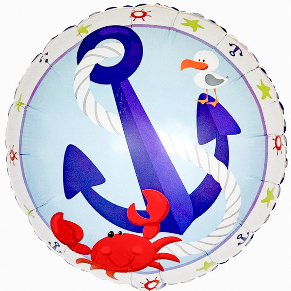 Шар (18"/46 см) Круг, Морской якорь, Белый, 1 шт.