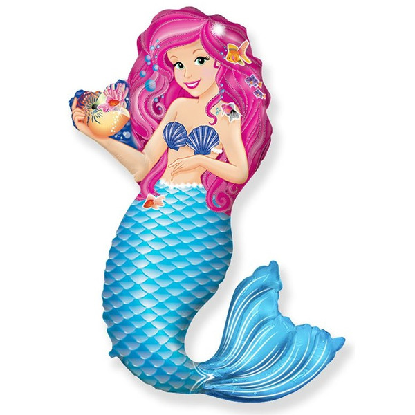 Шар (15"/38 см) Мини-фигура, Русалочка с ракушкой, 1 шт.