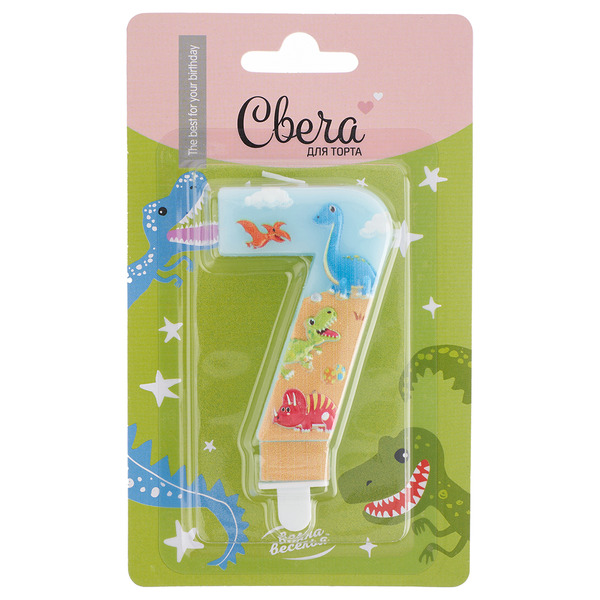 Свеча Цифра, 7 Динозаврики, 9 см, 1 шт. с держат.