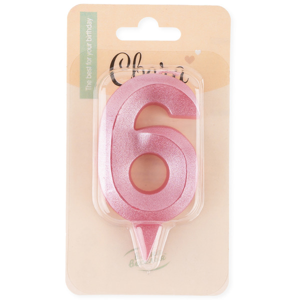 Свеча Цифра, 6 Грани, Розовый, 7 см, 1 шт. с держат.