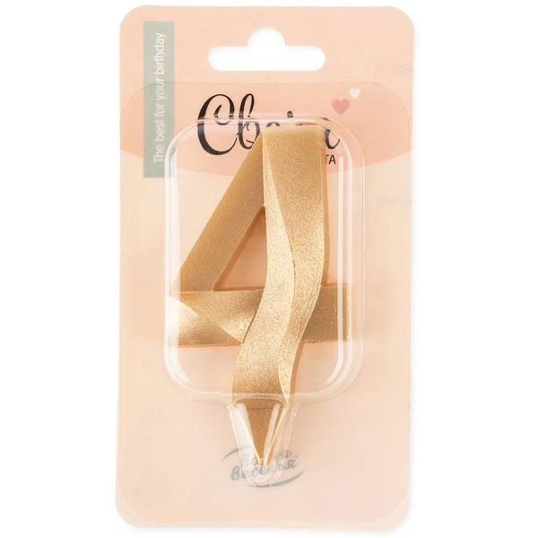 Свеча Цифра, 4 Грани, Золото, 7 см, 1 шт. с держат.