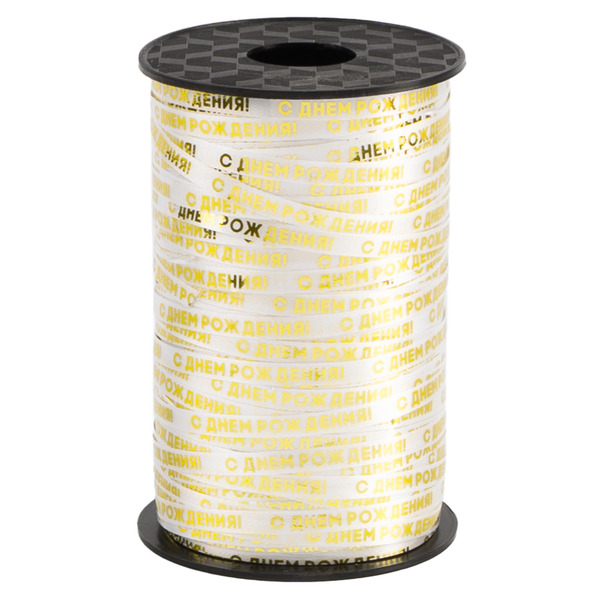 Лента полипропиленовая (0,5 см*250 м) С Днем Рождения, Золото, Металлик, 1 шт.