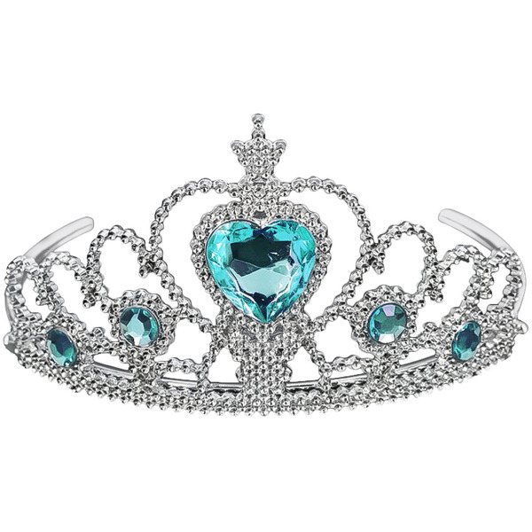 Корона пластиковая, Сердце, Серебро/Голубой, 1 шт.