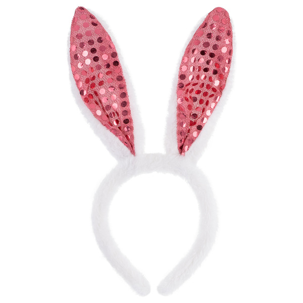 Ободок Зайка, с пайетками, Белый/Розовый, 1 шт.