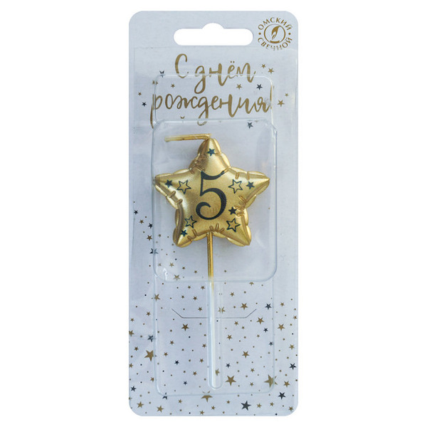 Свеча Звезда, 5, Золото, Металлик, 9 см, 1 шт.