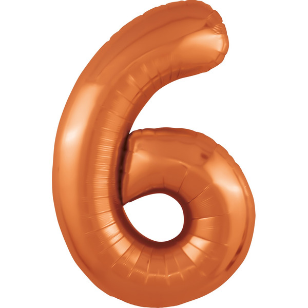 Шар (40"/102 см) Цифра, 6 Slim, Папайя, 1 шт. в уп.