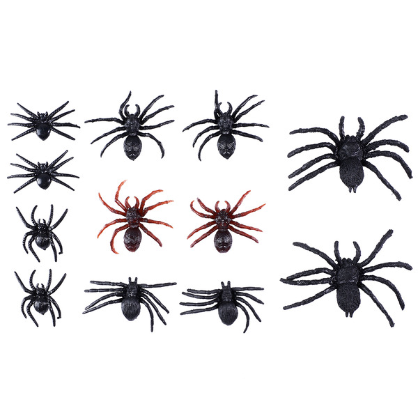 Декоративное украшение, Микс Пауки, 3,2-8 см, Черный/Коричневый, 12 шт.
