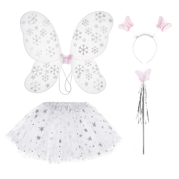 Набор (ободок, крылья, юбочка, волшебная палочка), Фея Снежинка, Белый, 47*38 см, 1 шт.
