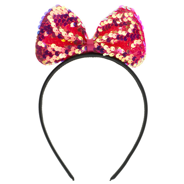 Ободок, Прелестный бант, с пайетками, Малиновый, 1 шт.