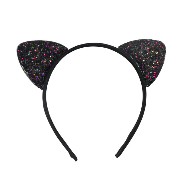 Ободок Кошка, Черный, с блестками, 1 шт.