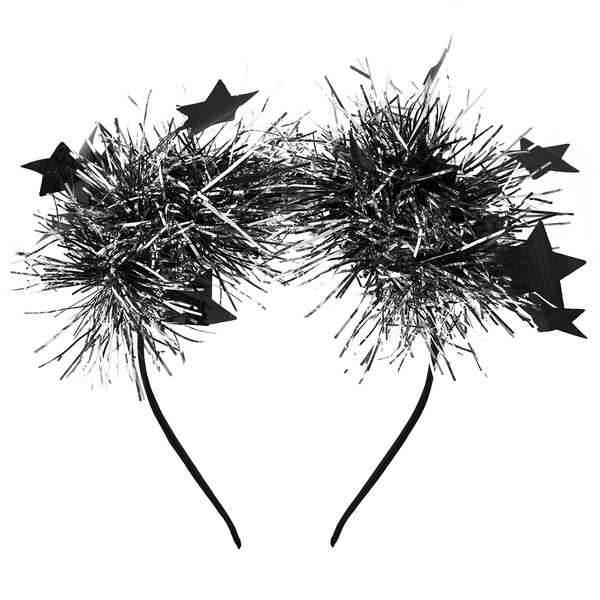 Ободок, Шарики из дождика, Черный/Серебро, 1 шт.
