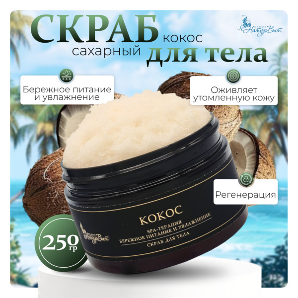 Скраб д/тела сахарный НатурВита Кокос, 250 мл.