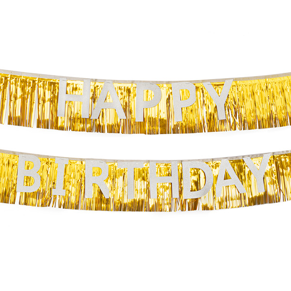 Гирлянда с мишурой Happy Birthday, Белый/Золото, с блестками, 300 см, 18 см, 1 упак.