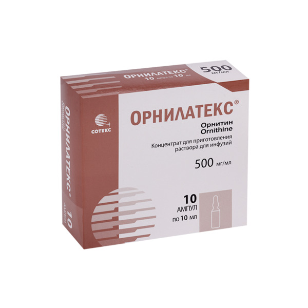 Орнилатекс 500 мг/мл, 10 мл, 10 шт, концентрат для приготовления раствора для инфузий