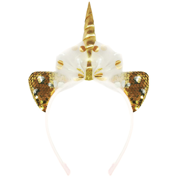 Ободок, Единорог с бантиком, Золото/Белый, 1 шт.