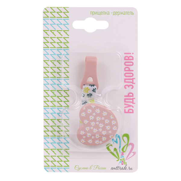 Прищепка-держатель Будь здоров д/соски-пустышки сердечко с лентой тип 1