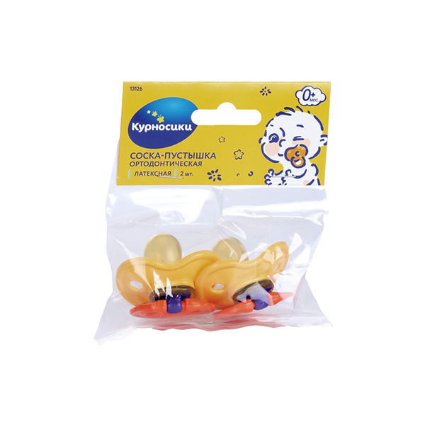 Соска-пустышка Курносики латекс ортодонт/кольцо (с 0 мес), 2 шт, (13126)