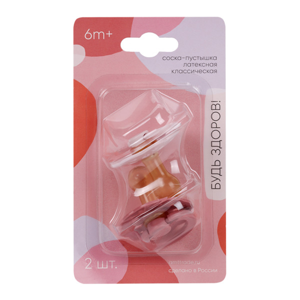 Соска-пустышка Будь Здоров латекс круглый кружевной нагубник (с 6 мес), 2 шт