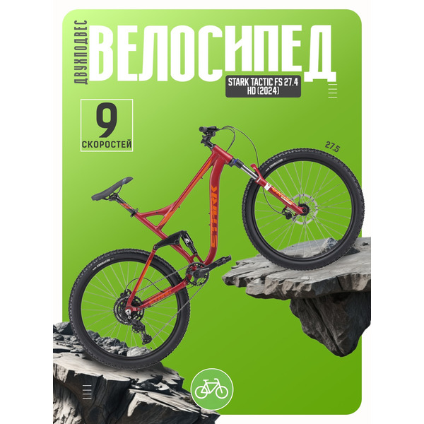 Велосипеды Двухподвесы Stark Tactic FS 27.4 HD, год 2024, цвет Красный-Оранжевый, ростовка 18