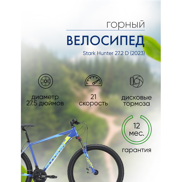 Горный велосипед Stark Hunter 27.2 D, год 2023, цвет Синий-Голубой, ростовка 16