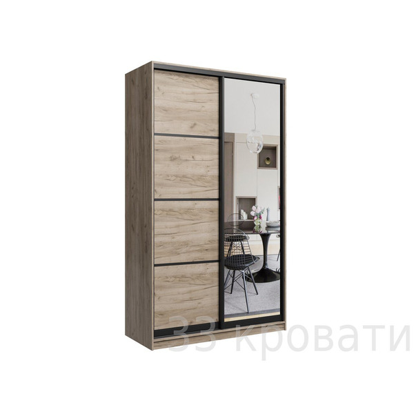Шкаф-купе Бавария ЛОФТ 140см (дуб крафт серый+зеркало)