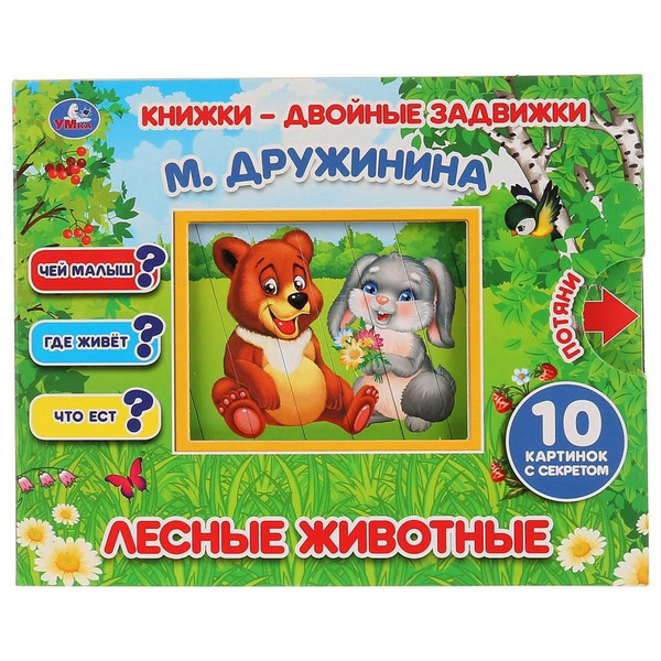 Книжка с двойными задвижками в веселой игровой форме разовьет внимание, памя и логическое мышление ребенка. Замечательные стихи Марины Дружининой познакомят малыша с лесными животными.