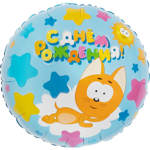 Шар (18"/46 см) Круг, Котенок Котэ, С Днем Рождения!, 1 шт. в уп.