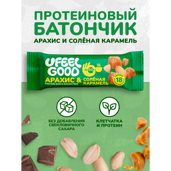 Батончик глазированный с арахисом и солёной карамелью ToGo UFEELGOOD, 45 г.