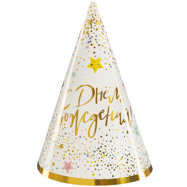 Колпаки, С Днем Рождения (сверкающие блестки), Металлик, 16 см, 6 шт. в упак.