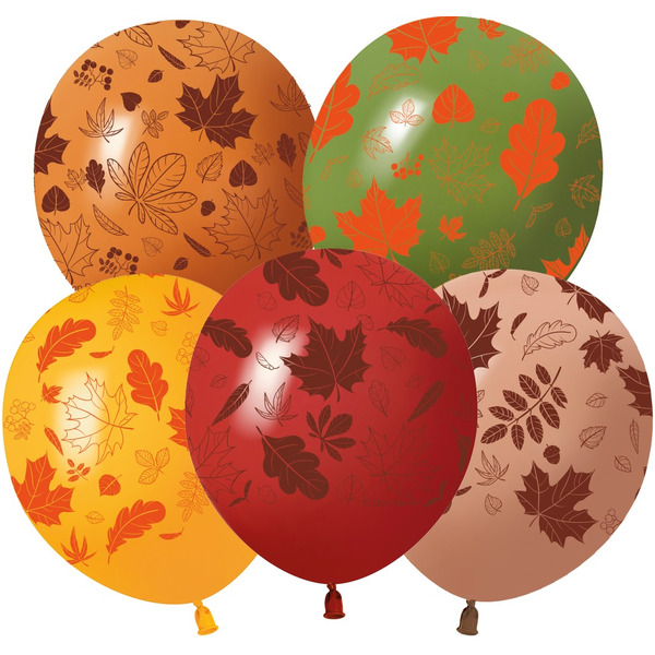 Шар (12"/30 см) Осенние листья, Ассорти, пастель, 5 ст, 25 шт.