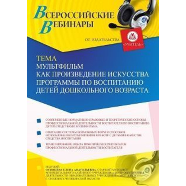 Вебинар «Мультфильм как произведение искусства программы по воспитанию детей дошкольного возраста»