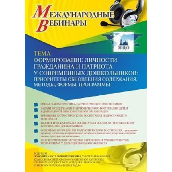 Международный вебинар «Формирование личности гражданина и патриота у современных дошкольников: приоритеты обновления содержания, методы, формы, программы»