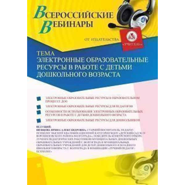 Вебинар «Электронные образовательные ресурсы в работе с детьми дошкольного возраста»