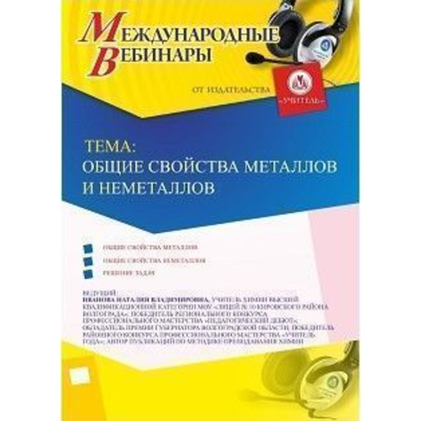 Международный вебинар "Общие свойства металлов и неметаллов"