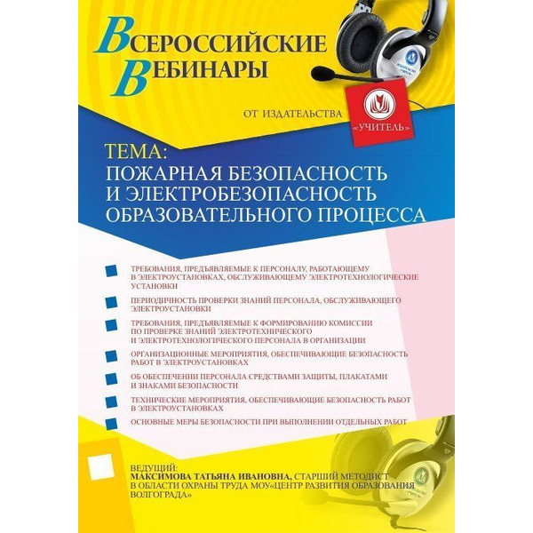 Приглашаем инструкторов по труду, руководителей, учителей, методистов, классных руководителей, психологов, педагогов дополнительного образования принять участие в offline-вебинаре «Пожарная безопасность и электробезопасность образовательного процесса».