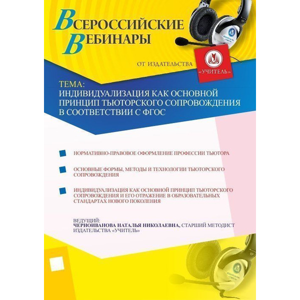 Приглашаем воспитателей, тьюторов, заместителей руководителя по УВР, методистов, руководителей МО, педагогов и специалистов ОО принять участие в offline-вебинаре «Индивидуализация как основной принцип тьюторского сопровождения в соответствии с ФГОС».
