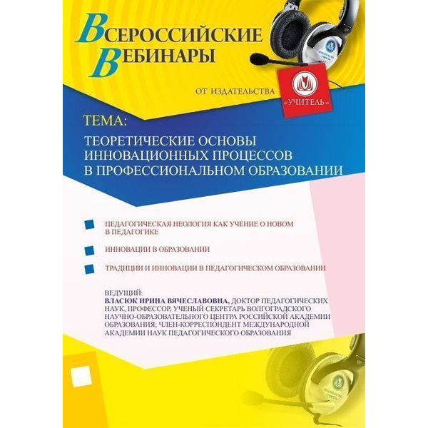 Приглашаем педагогов и специалистов среднего профессионального образования; педагогов и специалистов дополнительного профессионального образования; специалистов, не имеющих педагогического образования; студентов педагогических вузов и ссузов принять участие в offline-вебинаре «Теоретические основы инновационных процессов в профессиональном образовании».