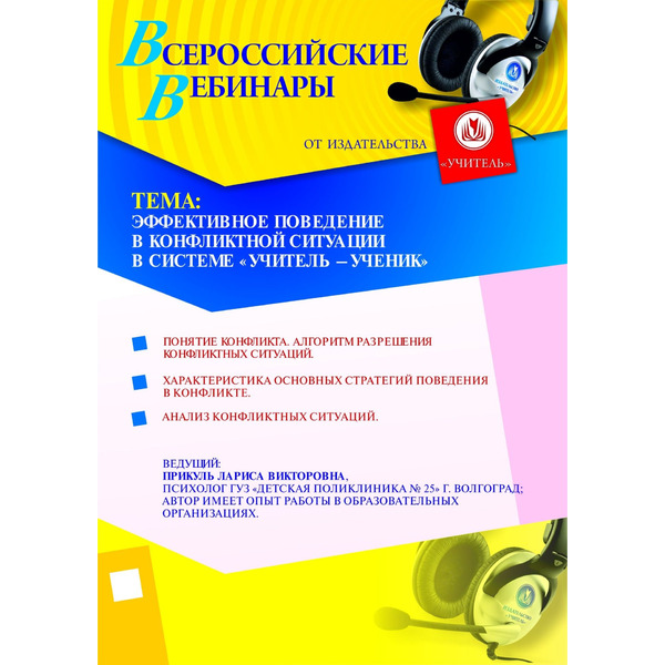 Приглашаем психологов, педагогов-психологов, социальных педагогов, классных руководителей, заместителей директора по УВР, руководителей МО, педагогов и специалистов ОО, родителей принять участие в offline-вебинаре «Эффективное поведение в конфликтной ситуации в системе «учитель – ученик».