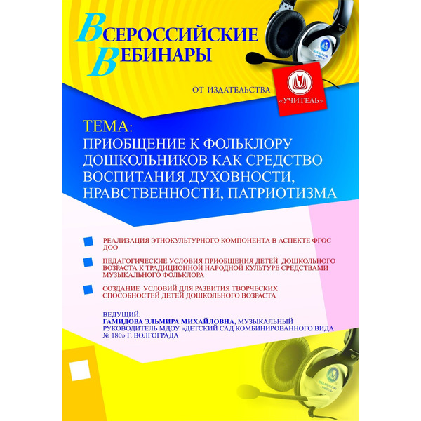 Приглашаем музыкальных руководителей ДОО, воспитателей, старших воспитателей, педагогов дополнительного образования, методистов принять участие в offline-вебинаре «Приобщение к фольклору дошкольников как средство воспитания духовности, нравственности, патриотизма».